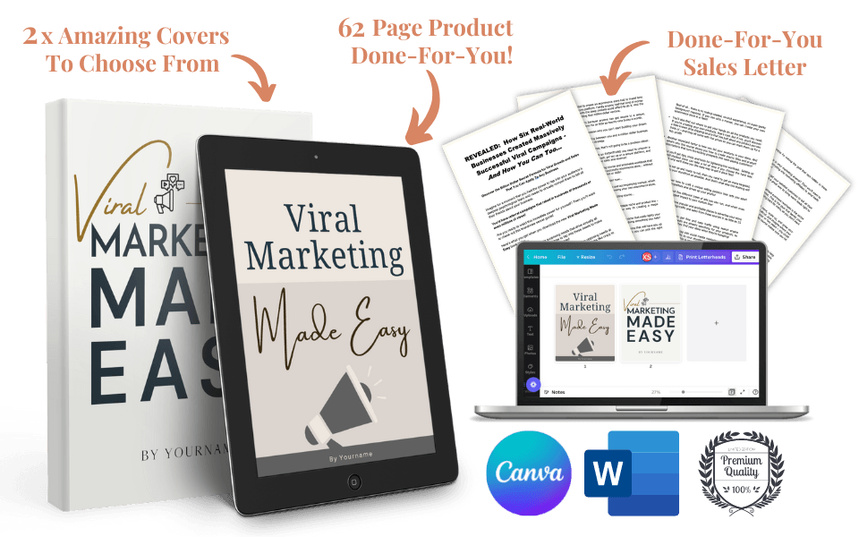 * Includes done-for-you ebook, sales letter, and graphics that you can brand as your own. You can sell it as is, or even use it to create videos, audios, articles and more!