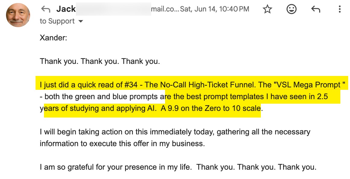 As a special members only treat, if you order today, I’m going to include a FREE review of any offer, ad, sales page, email or piece of marketing material you create as the result of using my techniques.